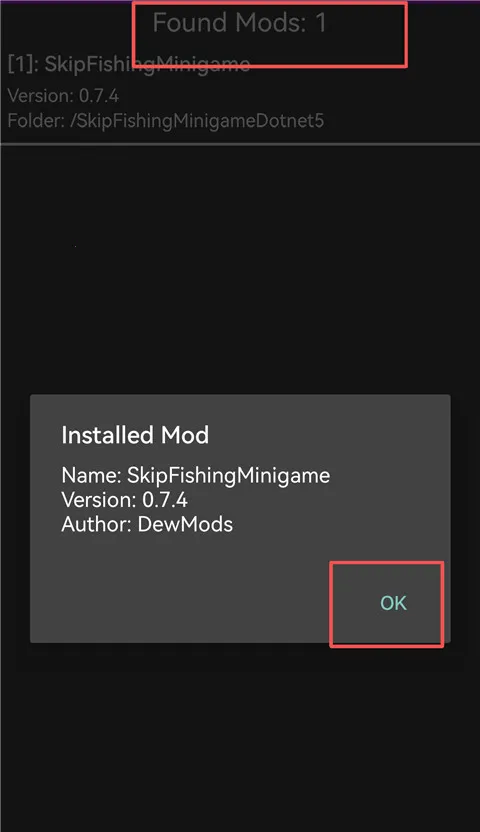 12、点击ok,可以看见已经mod数量为1,导入成功。