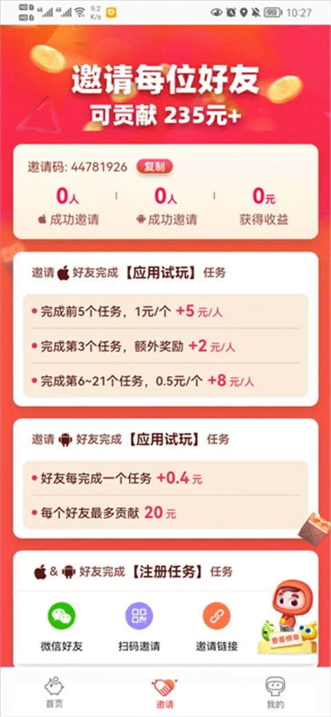 7、另外在邀请界面中用户通过邀请好友也可以获取一定的奖励