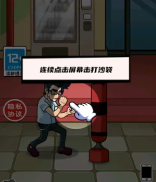 3、然后我们就可以练拳了,点击屏幕即可击打沙袋,我们首个任务是打碎8个沙袋;