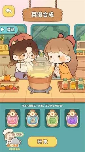 4、点击研发来消耗不同的元素研发全新的菜品。