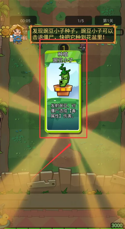 1、开局系统赠送豆荚小子作为初始单位,需要依靠它进行前期防御,战斗过程中击败僵尸会掉落阳光资源。