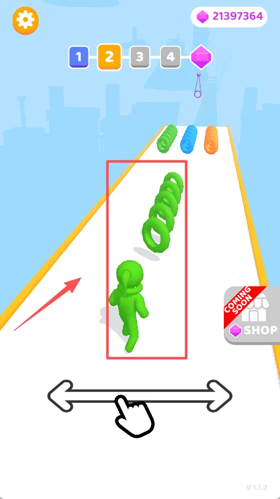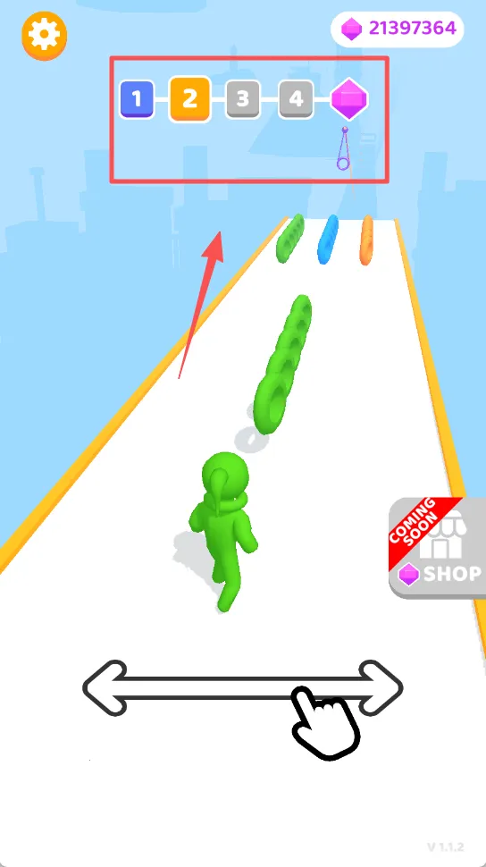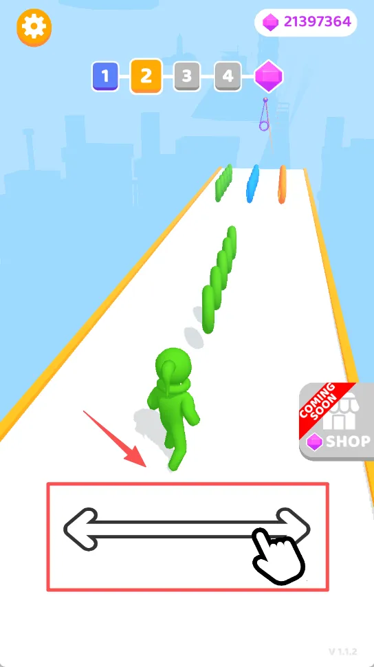 2、使用底部左右箭头或滑动条,控制绿色小人移动方向去收集物品。